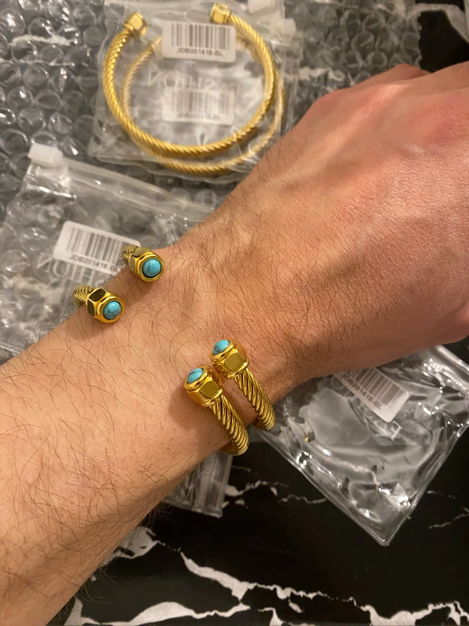 Our bracelets are crafted with high-quality materials and finishes made to resist tarnishing. With normal wear and simple care, they’ll maintain their color and shine beautifully over time.