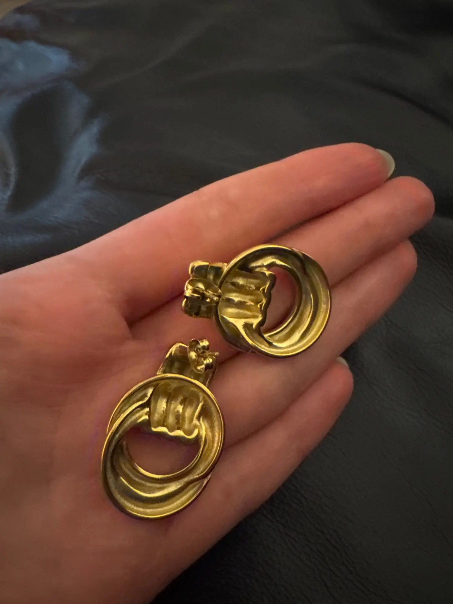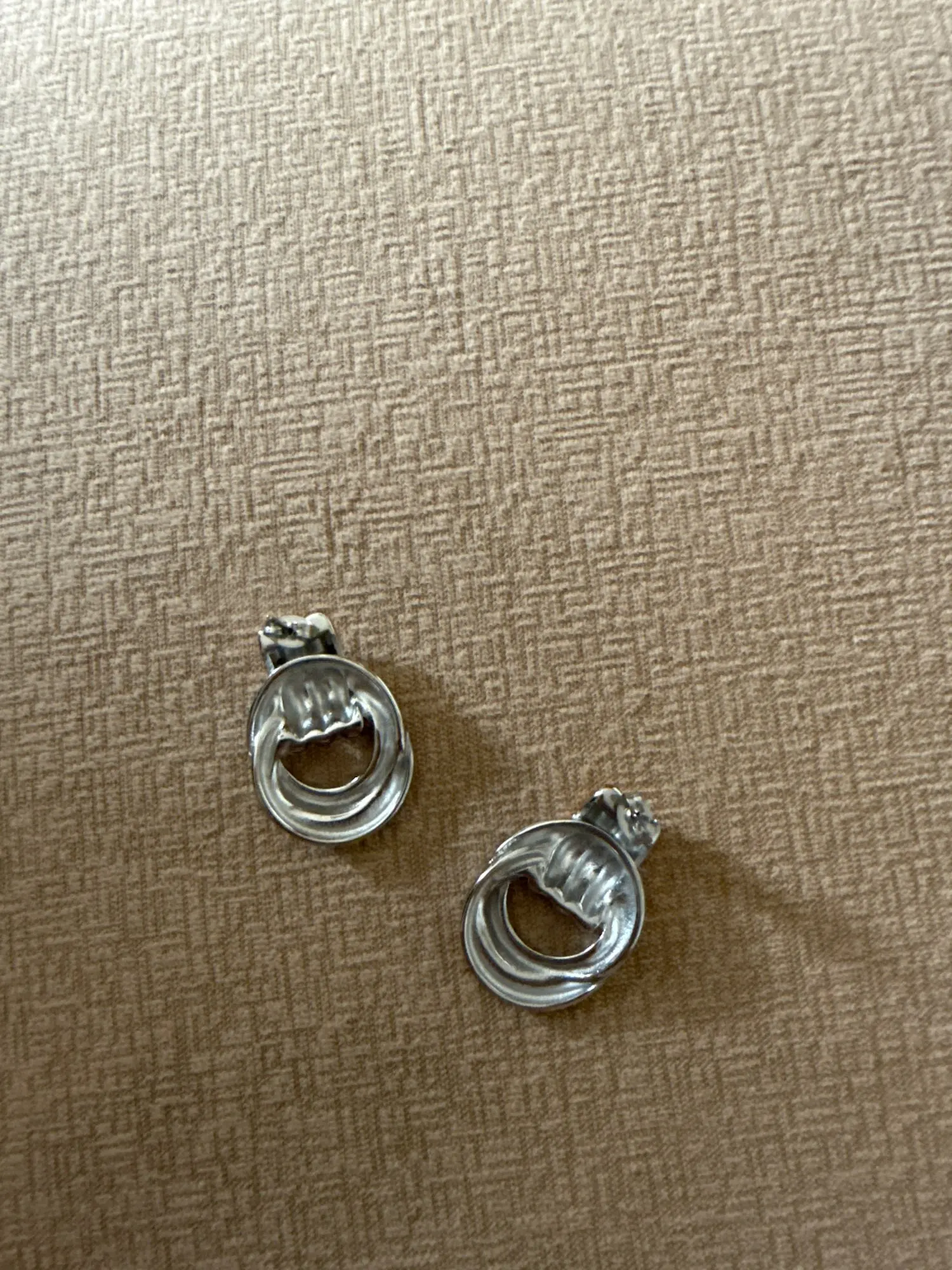 These earrings are defined by their smooth, layered curves and polished finish. The circular design creates depth and movement, giving them a sculptural look that stands out without feeling overpowering.